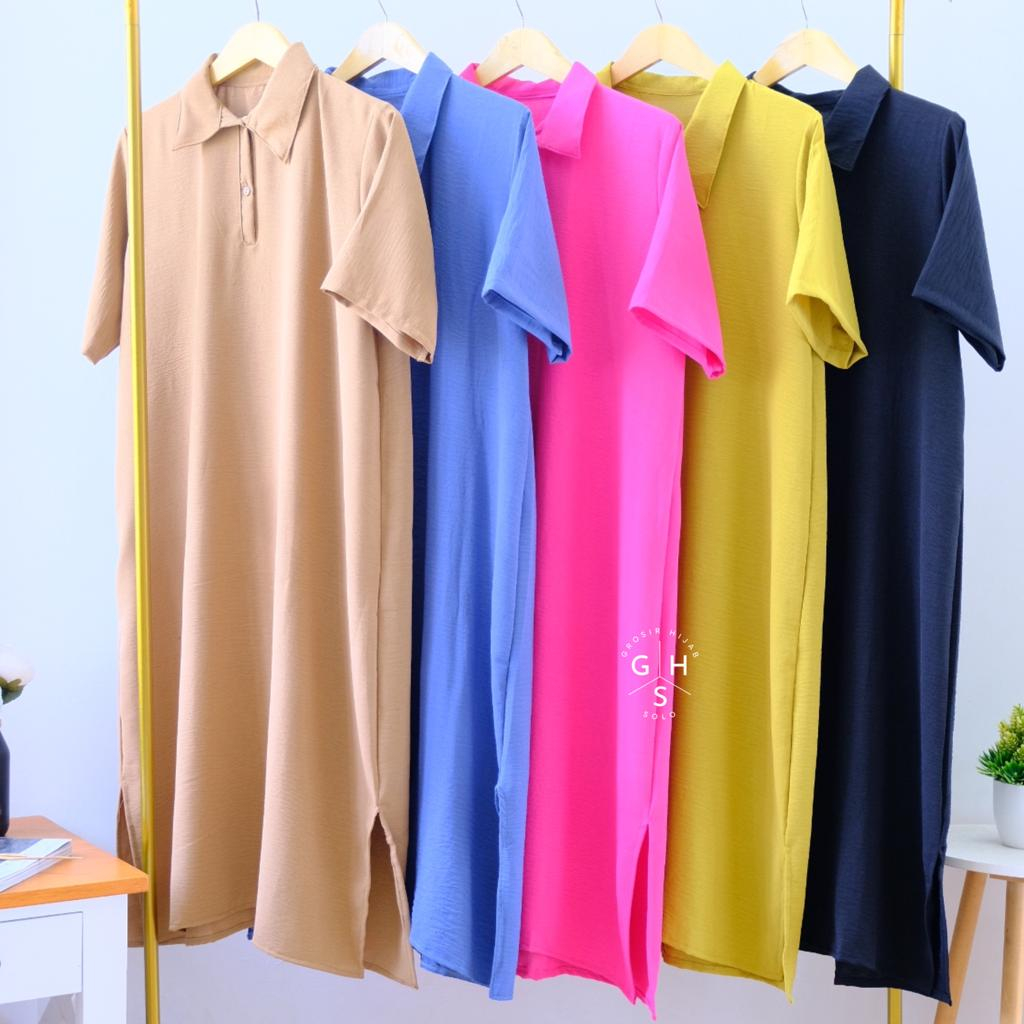 ๐ model tunik dress lengan pendek, berkerah kancing depan busui aktif