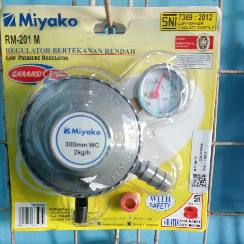 Miyako RM-201M, hadir dengan penunjuk tekanan gas, memudahkan anda untuk memeriksa jika isi tabung gas sudah habis dan harus diganti dengan yang baru. Miyako RM201M Gas Regulator dengan material zink alloy, awet digunakan dan tidak membuat bocor tabung gas Anda. Sangat aman digunakan. Regulator gas dengan meteran Material Zink Alloy Sangat aman digunakan Pressure: 2kg/H Penguncian diputar Gratis Seal Karet anti bocor