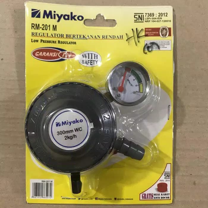 Miyako RM-201M - Gas Regulator Regulator dengan material zink alloy. Regulator dengan Tekanan 20 mbar. Material Zinc Alloy. Katup penyambung baja 20 mm. 300mm/WC - 20kg/h. Aman digunakan dan tahan lama.