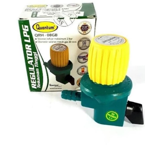regulator tekanan tinggi ( high pressure) dari merk quantum - kualitas terbaik - hemat gas - tes kebocoran gas - sangat aman untuk digunakan - diameter saluran masuk gas 20 mm Kapasitas aliran gas : 0 - 6 kg/h Tekanan keluar maximum 2 bar Tekanan masuk : 0,7 - 20 kg/cm Gratis rubber seal (katup tabung LPG)