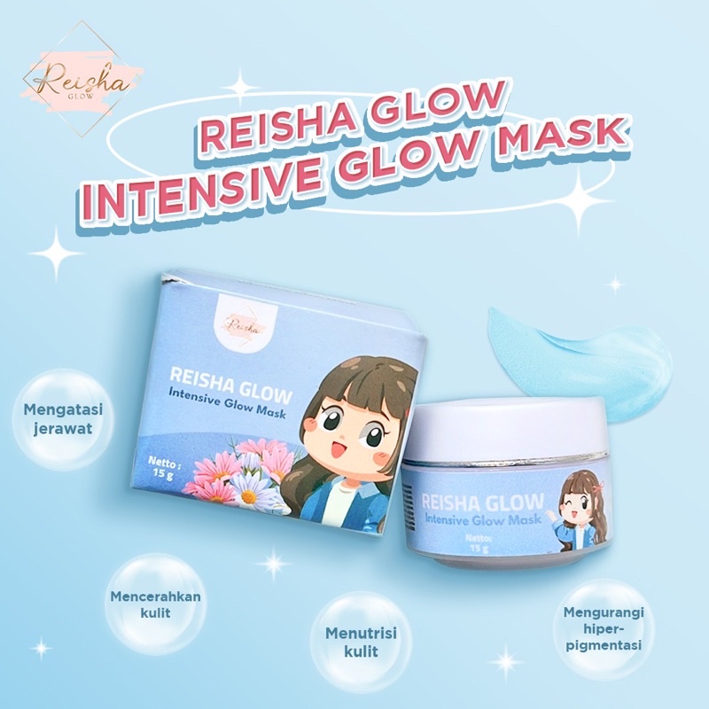 REISHA GLOW INTENSIVE GLOW MASK Masker yang ringan untuk untuk membantu mengatasi kulit yang berjerawat dan bruntusan membuat kulit terasa lebih sehat. Bekerja saat kamu tidur untuk menghidrasi, menenangkan dan mencerahkan dipagi hari