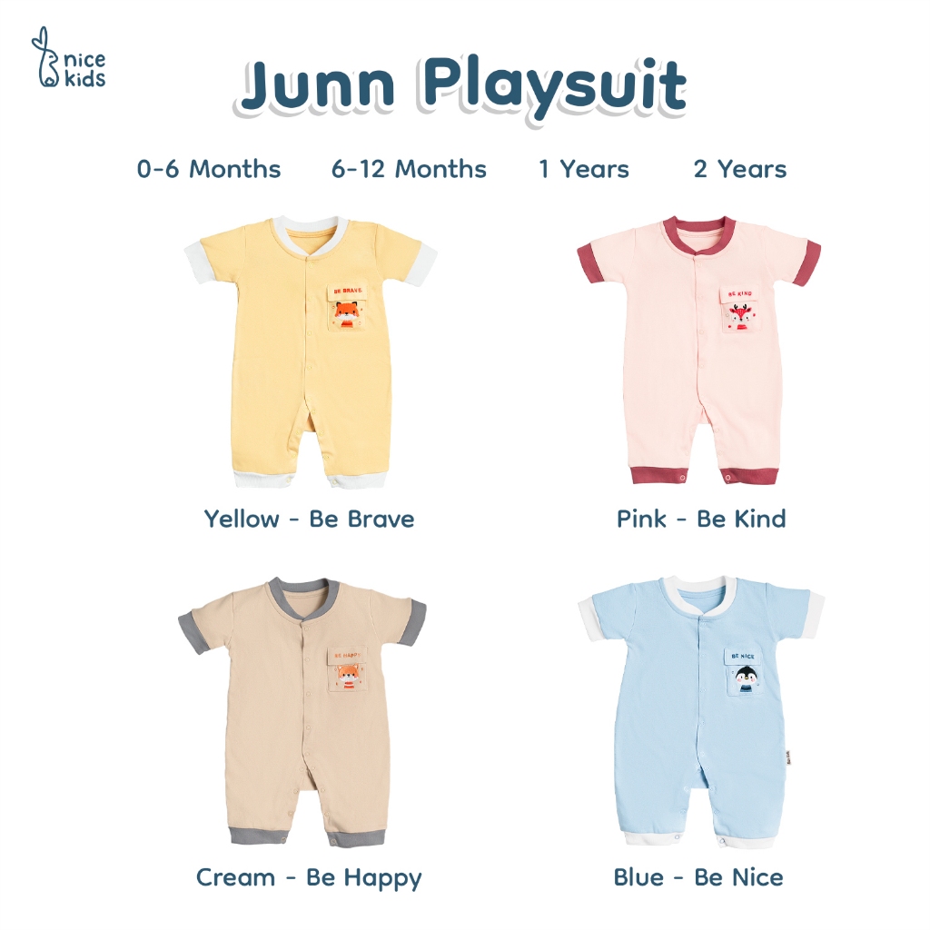 Junn Sleepsuit Available sizes: 0-6 months - 6-12 months = lebar dada 28.5cm, panjang 51cm 6-12 months - 1 year = lebar dada 29.5cm, panjang 57cm 1 years - 2 years = lebar dada 34cm, panjang 62cm 2 years - 3 years = lebar dada 35cm, panjang 69cm