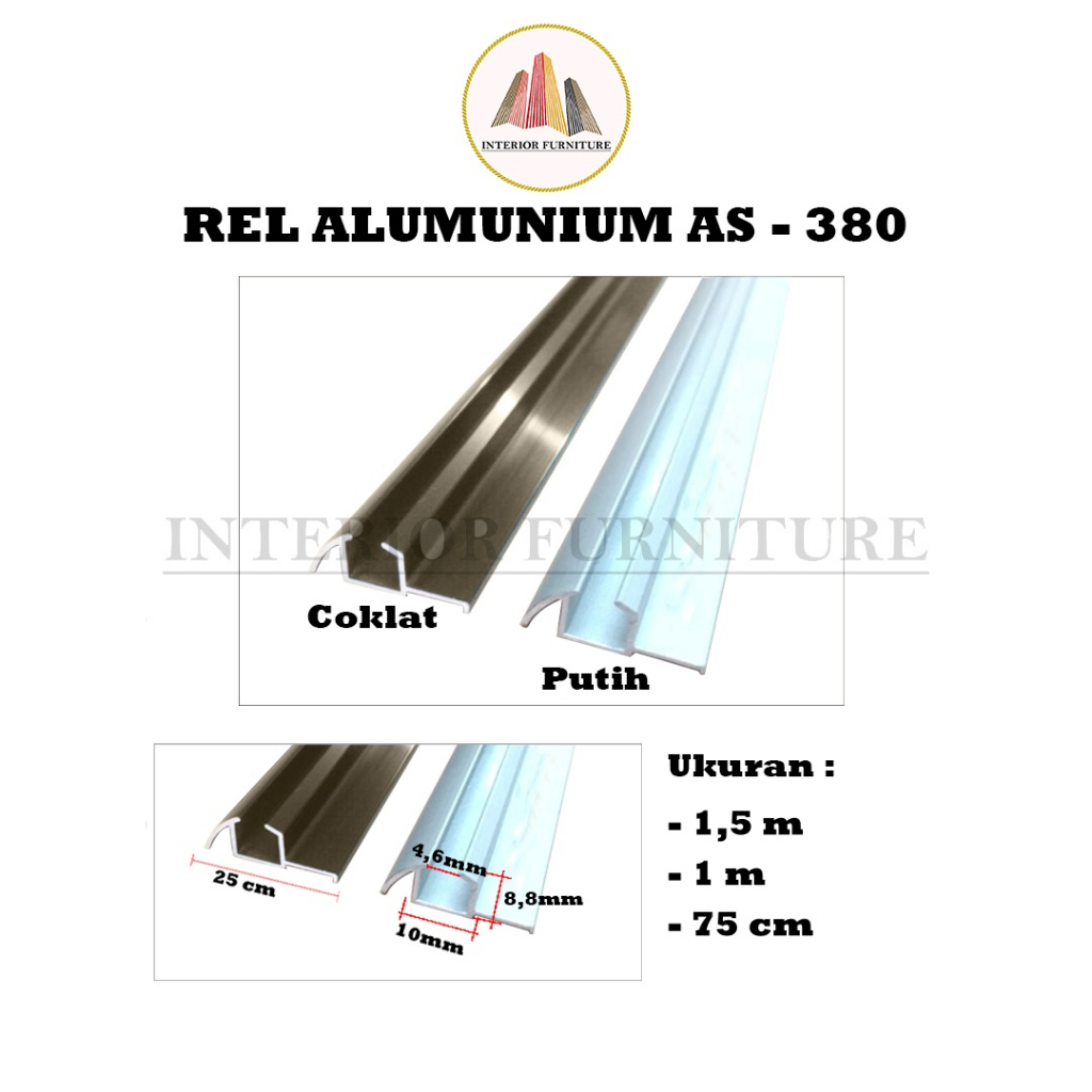 Rel Lemari Pintu Sliding Timbul Tpe : SD 380 Ada 3 Varian Panjang : * 75CM * 1M ( 100 cm ) * 1.5 M ( 150 cm ) Ada 2 Warna Rel SD 380 : * Anodize ( Putih ) * Brown ( Coklat ) Bahan : Alumunium *pasangan untuk roda sliding SD380 * 1 daun pintu butuh 1 batang / pcs