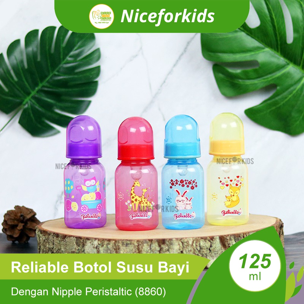 Desain dot peristaltic Reliabe dibuat khusus agar bayi dapat menggunakan kekuatan lidah dan otot-otot dalam rongga mulut seperti saat menyusui. Dot botol Reliable terbuat dari bahan silicone gel, menggunakan penutup botol yang tahan sehingga membuat bayi lebih nyaman saat meminum susu