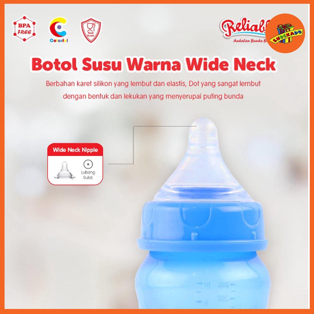 Dengan warna - warni yang menarik botol warna RELIABLE membantu pengenalan warna secara dini terhadap bayi. Selain itu dapat membantu melatih otak bayi dalam mengigat warna secara baik. Maka dari itu, Bunda dapat mengenalkan Reliable Botol Susu Warna Wide Neck Anti Colic !
