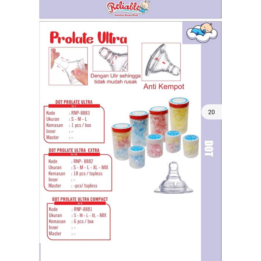 Reliable DOT WIDE NECK PERISTALTIC adalah dot dengan desain garis2 yang berfungsi sebagai anti sedak oleh karena itu tak memerlukan lagi memasang anti sedak pada botol. Memudahkan lidah Bayi pada waktu menyusui. Pada bagian ujung Dot di design dengan ukuran dan lekukan pada langit2 mulut bayi. Permukaan Dot berstektur agar bibir Bayi mudah menempel pada Dot Material menggunakan bahan 100% silikon berkualitas dan terbebas dari bahan - bahan kimia berbahaya. Panduan Ukuran : 1. Size S untuk 0 - 3 bulan 2. Size M untuk 3 - 6 bulan 3. Size L untuk 6 - 12 bulan 4. Size XL untuk 12 bulan keatas