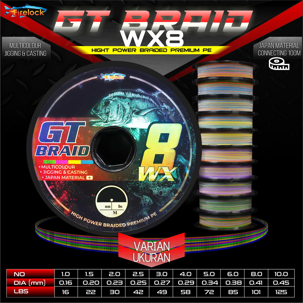 Detail RELIX NUSANTARA GERONG HS X8 MULTICOLOR CONNECTING 100 METER | SENAR PANCING | BENANG PE FIRELOCK GT-BRAID WX8 MULTICOLOR CONNECTING 100 M