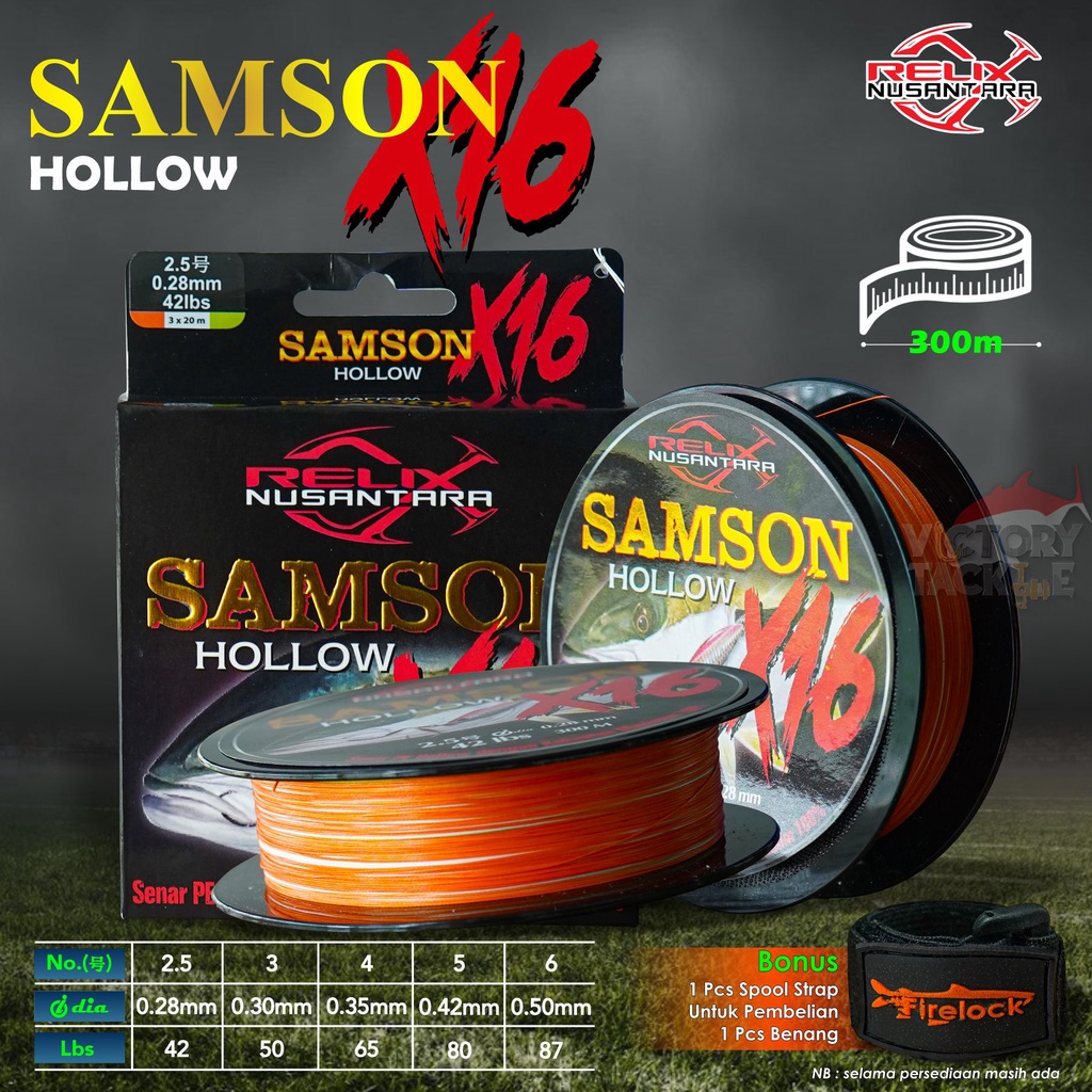 SAMSON X16 SENAR MULTIFILAMEN JENIS HOLLOW YANG TERBUAT DARI BAHAN 100 % PE DENGAN KONTRUKSI 16 KEPANGAN DENGAN METODE ‘EQUALIZED BRAIDING TENSION’ MEMBERIKAN KEMAMPUAN MENCENGKRAM SAAT DISAMBUNG KE LEADER TANPA KNOT (SPLASH) DENGAN KEKUATAN MENDEKATI 100 %. SAMSON X16 SANGAT AMAN UNTUK KNOT DENGAN RESIKO PE MEMOTONG LEADER LEBIH MINIM KARENA FISIKNYA YG PIPIH DAN TIDAK SETAJAM PE DENGAN FISIK BULAT KETIKA DIIKAT KE LEADER. SAMSON X 16 JUGA SANGAT BAIK DIFUNGSIKAN SEBAGAI ASSIST LINE DAN MERUPAKAN SENAR PE DENGAN KEKUATAN SEMPURNA COLOR : MULTICOLOR LENGTH : 300M #/DIA/LB : #2.5 (42LB / 0.28) #3.0 (50LB / 0.30) #4.0 (65LB / 0.35) #5.0 (80LB / 0.42) #6.0 (87LB / 0.50) #7.0 (96LB / 0.53) #8.0 (115LB / 0.55) #10.0 (130LB / 0.60)