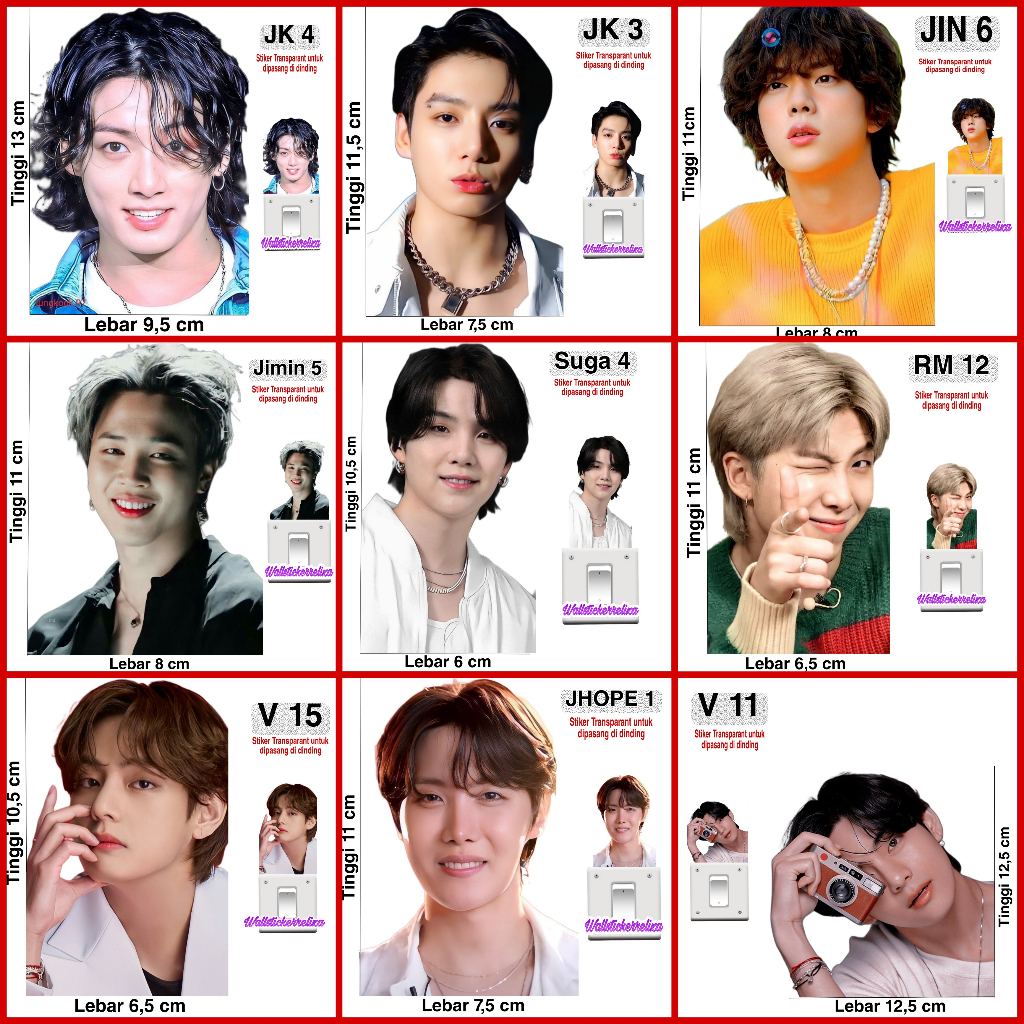 Reliza Stiker KPOP BTS BANGTAN Taehyung Jungkook Suga Jin Jhope Jimin RM CUTE STICKER DINDING TRANSPARANT / WATERPROOF STIKER DINDING