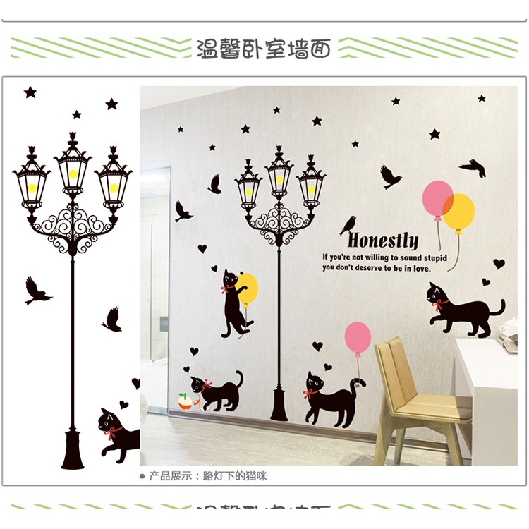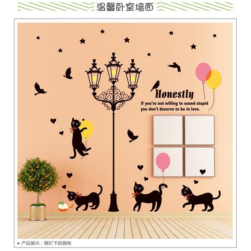 Detail Reliza Wall Sticker Black Cat and Lamp Stiker Dinding Lampu Kucing LDR8253