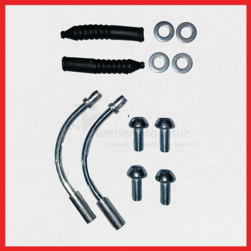 2 pcs Master/Cagak Rem 4 pcs Kampas Rem L 2 pcs Handle Rem Setengah Alloy 2 pcs Kabel Rem Depan Belakang 2 pcs L Rem 2 pcs Karet Rem 4 pcs Baut 4 pcs Ring Baut