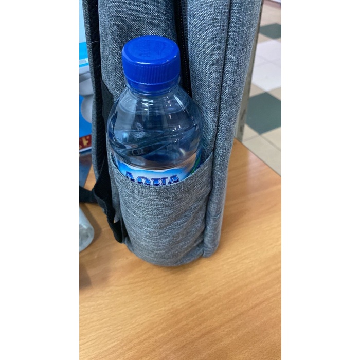 BAGIAN SAMPING 1 X PORT USB DAN SEBELAHNYA ADA KANTONG BISA UNTUK BOTOL MINUM SEUKURAN BOTOM MINERAL 600ML BAGIAN DLAM TERDAPAT BUSA UNTUK PENAHAN LAPTOP