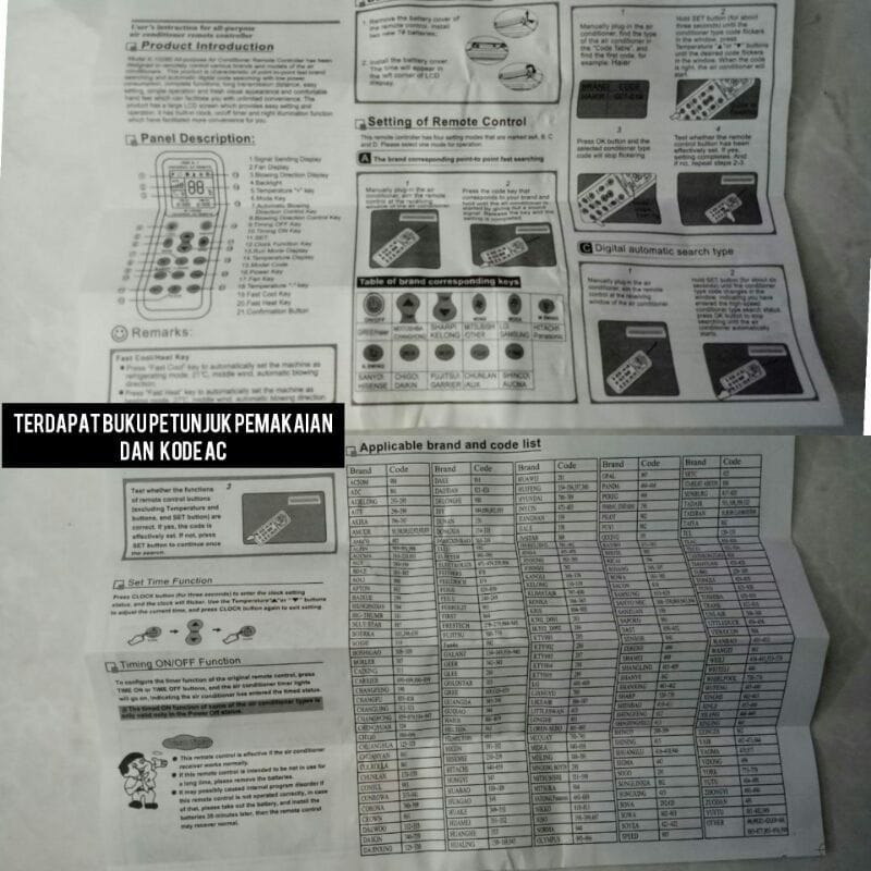 Detail Remot Remote AC Multi Universal K-1028E Semua Merk AC F1013