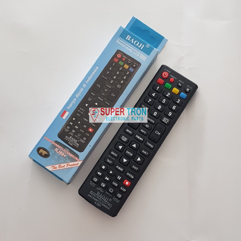 Cocok untuk TV LCD dan LED merk Sharp, LG dan Samsung Menggunakan 2 buah baterai AAA ( tidak termasuk dalam penjualan ) Ada petunjuk di belakang kotak dan remote Untuk kode TV, cek foto ketiga dan keempat 100% baru Tidak ada garansi