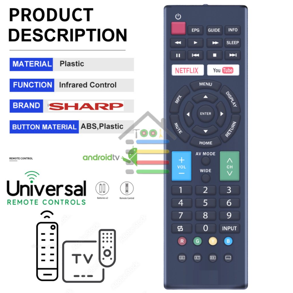 Detail REMOTE TV SHARP LED AQUOS DIGITAL YOUTUBE NETFLIX MULTIFUNGSI ED033TR