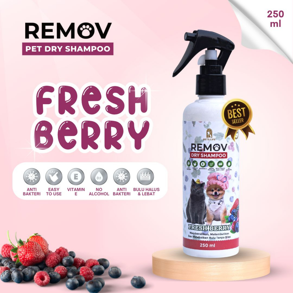 KEUNGGULAN REMOV DRY SHAMPOO : -Membunuh 99,99% mikroorganisme berbahaya (kuman, bakteri dan virus) -Mengurangi kadar minyak berlebih pada kulit dan bulu -Membuat bulu semakin halus, lembut dan lebat -Menghilangkan bau dan kotoran pada bulu -Mudah digunakan tanpa harus dibilas