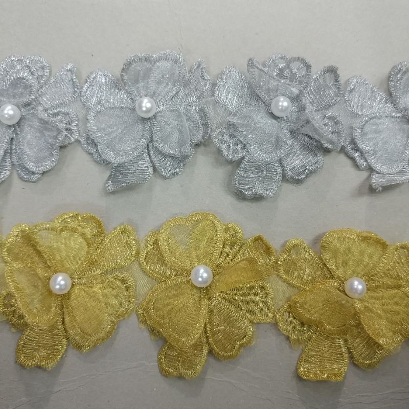 Detail Renda Bordir Bunga Mutiara per 16 kembang