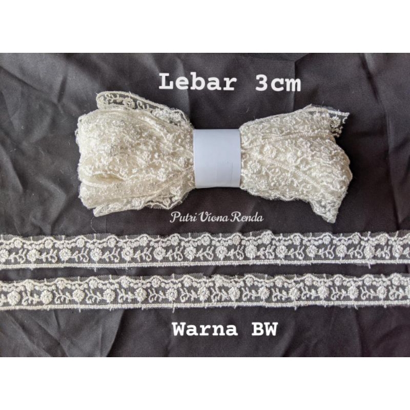 Bismillah Renda lebar 2-3 cm warna di jual per roll isi 15 yard atau 13.5 meter kurang lebih