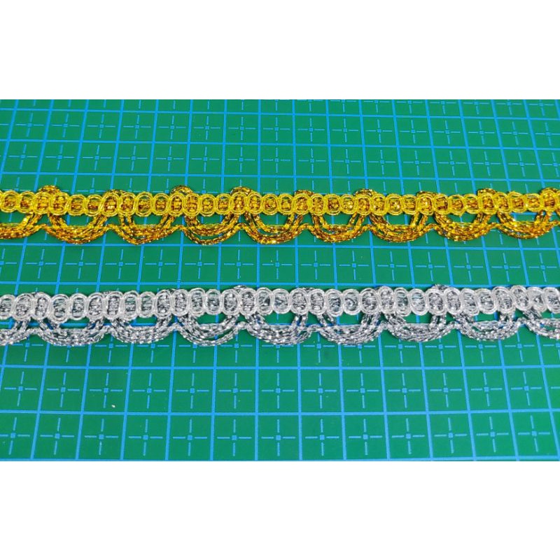Aksesoris Fashion > Aksesoris Tambahan > Aksesoris Tambahan Lainnya > RENDA EMAS / PERAK LEBAR 1.4CM ( ISI:17 YARD )