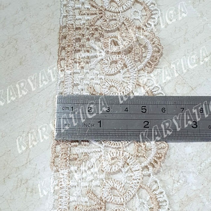 Detail Renda Giper / Gyper Kode 674 Kombinasi Coklat Susu - Putih (15 Yard)