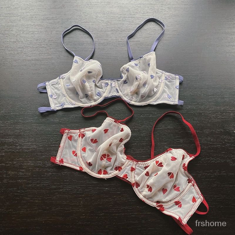 Detail Renda Prancis model pakaian dalam wanita ultra-tipis wanita payudara besar menunjukkan bra kecil set