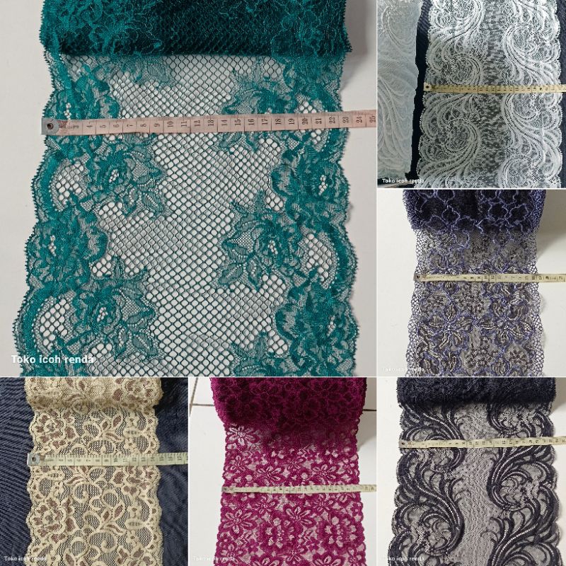 Detail Renda Stretch lebar Rollan varian warna harga per 100cm