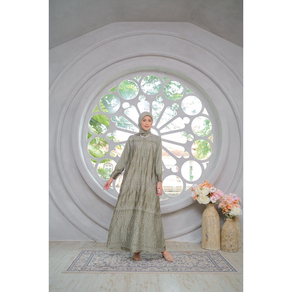 Material bahan armani silk with elegant embroidery Bahannya super halus, super ringan, bahannya glossy bikin looknya keliatan mewah, tidak terlalu tebal, tidak kaku, tidak gampang kusut, dan super flowy. Detail bordirnya simple dan elegan ✔️ Detail resleting depan aktif (Busui friendly) ✔️ Detail Kancing tangan aktif (Wudhu friendly) Tersedia 6 pilihan warna dan 5 ukuran S,M,L,XL,XXL