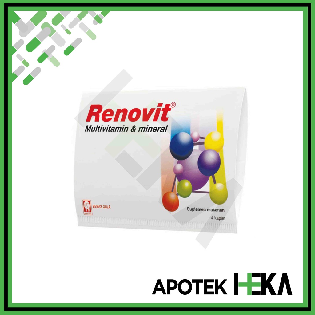 RENOVIT KAPLET merupakan suplemen makanan dengan kandungan multivitamin dan mineral lengkap untuk meningkatkan daya tahan tubuh dan membantu metabolisme tubuh dengan menutrisi organ-organ penting dalam tubuh. Renovit juga membantu regenerasi sel yang rusak akibat radikal bebas dan membantu mempercepat proses penyembuhan. Renovit aman untuk ibu hamil dan menyusui, penderita hipertensi dan diabetes.