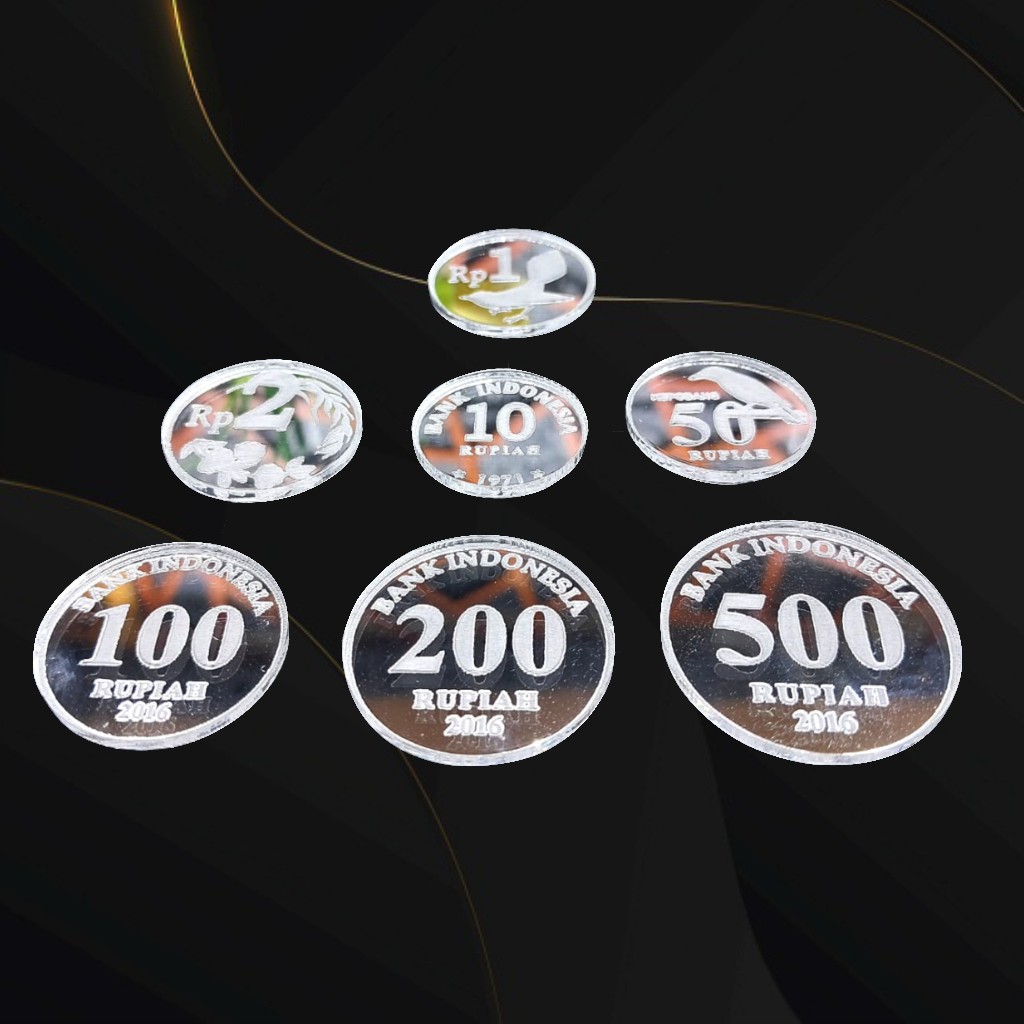 Replika Uang Koin Kuno 22 & 23 rupiah bahan mahar akrilik silver/perak dummy replika Uang kuno mahar nikah 1 rupiah 2 rupiah 5