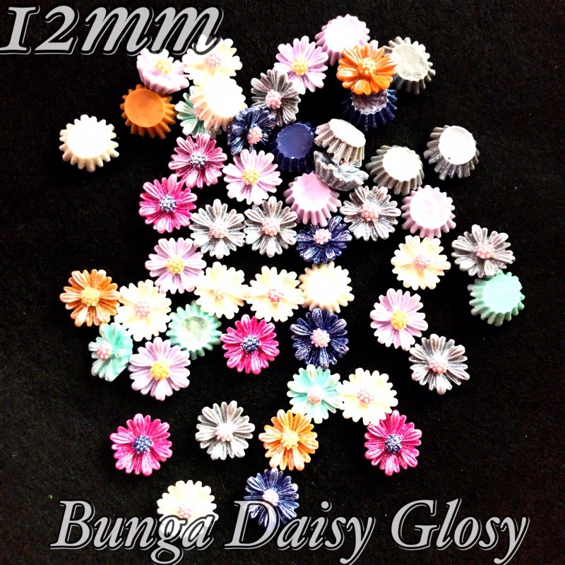 Detail RESIN BUNGA DAISY GLOSY 12mm isi 10pcs Bahan Craft kerajinan Tasbih bling bling Jepit rambut