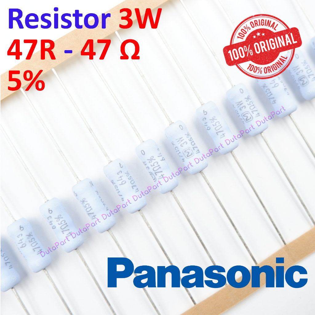 Detail Resistor 47 Ohm 3 Watt 5% ORIGINAL PANASONIC 3W 47R HIGH QUALITY