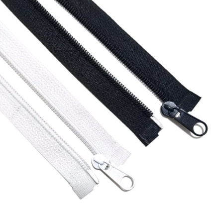- Resleting jaket gigi coil / halus / plastik yang sudah siap pakai untuk dijahit.