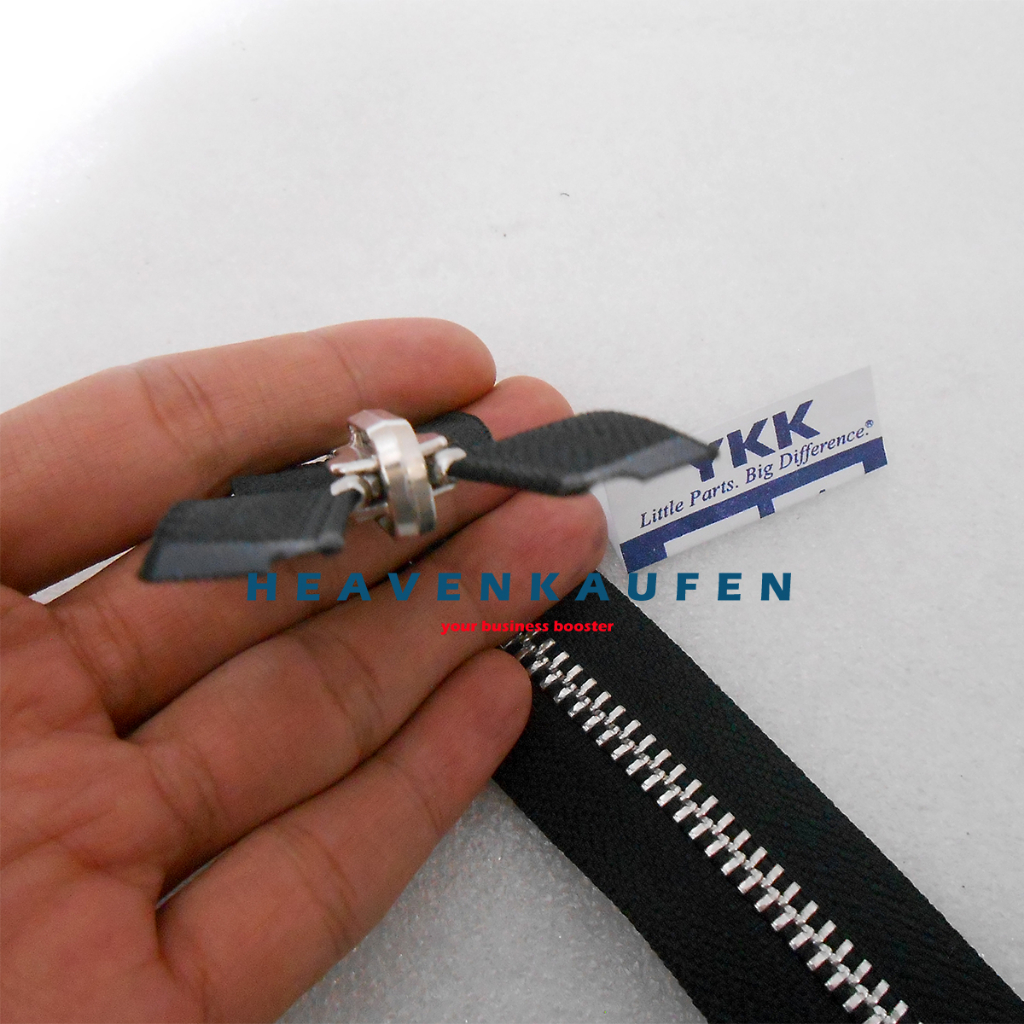 Detail Resleting Zipper YKK Type Gigi Besi 25 cm Atau 10 inch Hitam Silver Set Open-End Buka-Lepas Bolak Balik