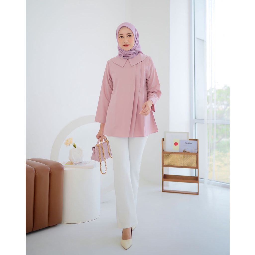 RETHA BLOUSE IDR 140.000 . Material bahan toyobo. Bahannya tidak kaku, ringan, tidak panas, tidak menerawang, lembut, sedikit glossy dan tidak gampang kusut. ✔️ Detail kancing belakang untuk memudahkan pemakaian Tersedia 4 pilihan warna dan 3 ukuran M,L,XL