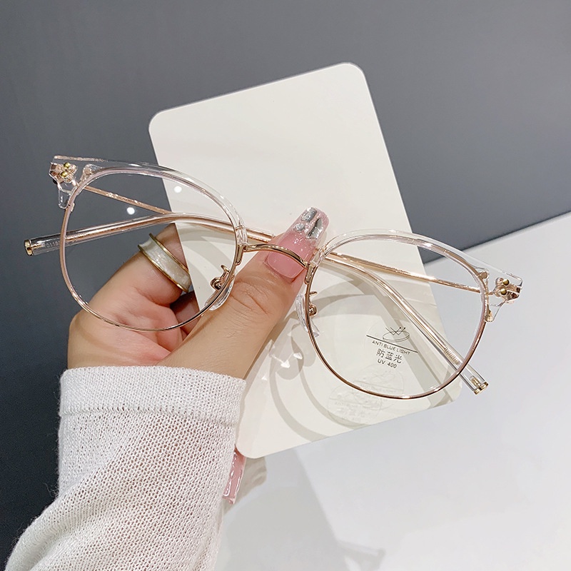Detail Retro Anti-Cahaya Biru Kacamata Wanita Logam Alis Trendi Miopia Bingkai Kaca Blue Ray Blocking Computer