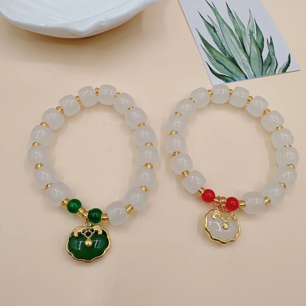 Detail Retro Ethnic Rabbit Safe Lock Lotus Seed Pendant Bracelet Gelang Gaya Cina Baru