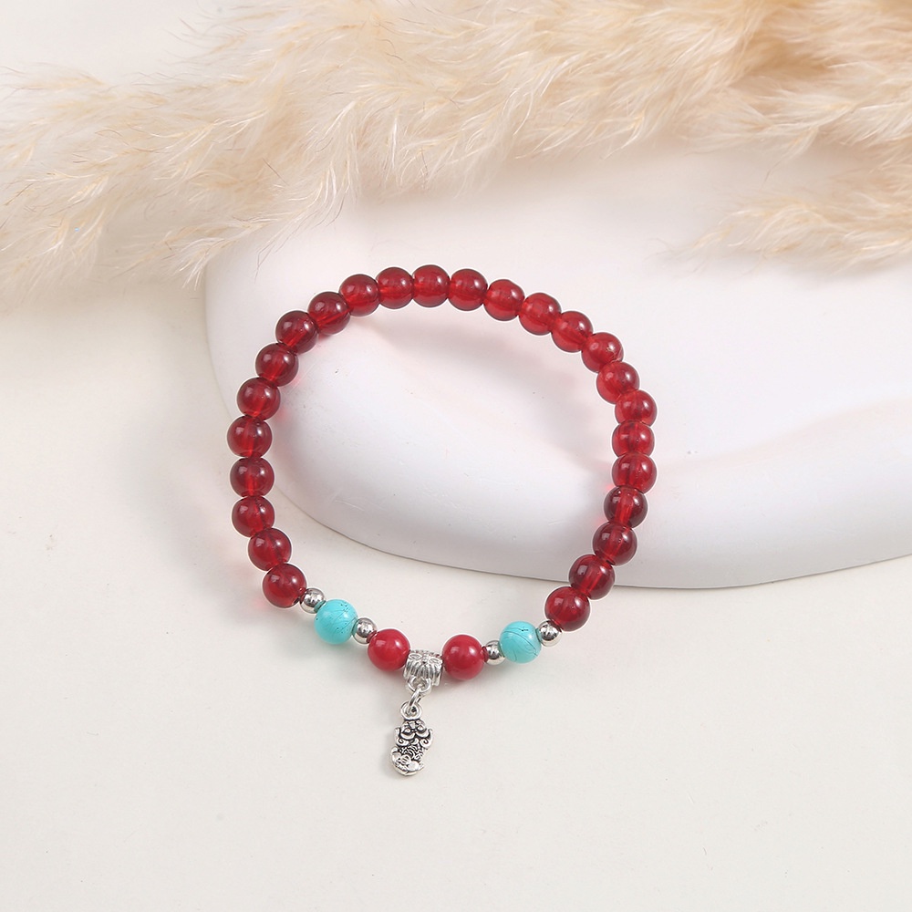 Detail Retro Garnet Gelang Mensimulasikan Burgundy Bead Bracelet Fashion Unisex Pasangan Pixiu Pendant Bracelet