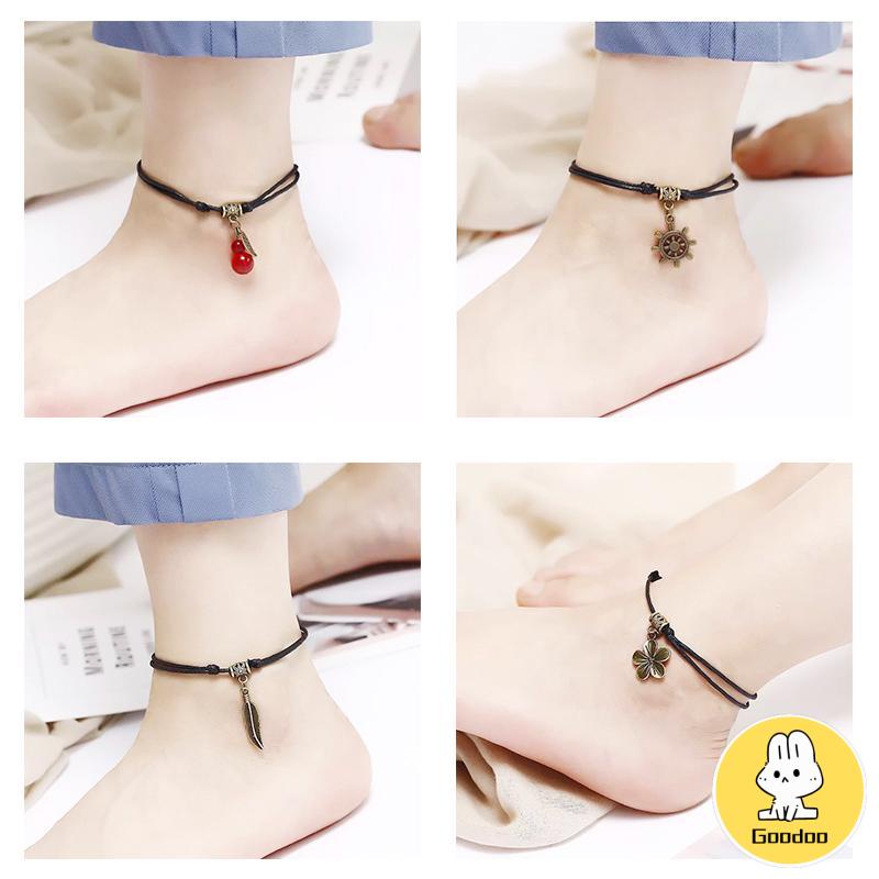Detail Retro Mori Kepribadian Gelang Kaki Beberapa Kreatif Hitam Tali Lilin Dikepang Gelang Kaki Pacar Mahasiswa -Doo