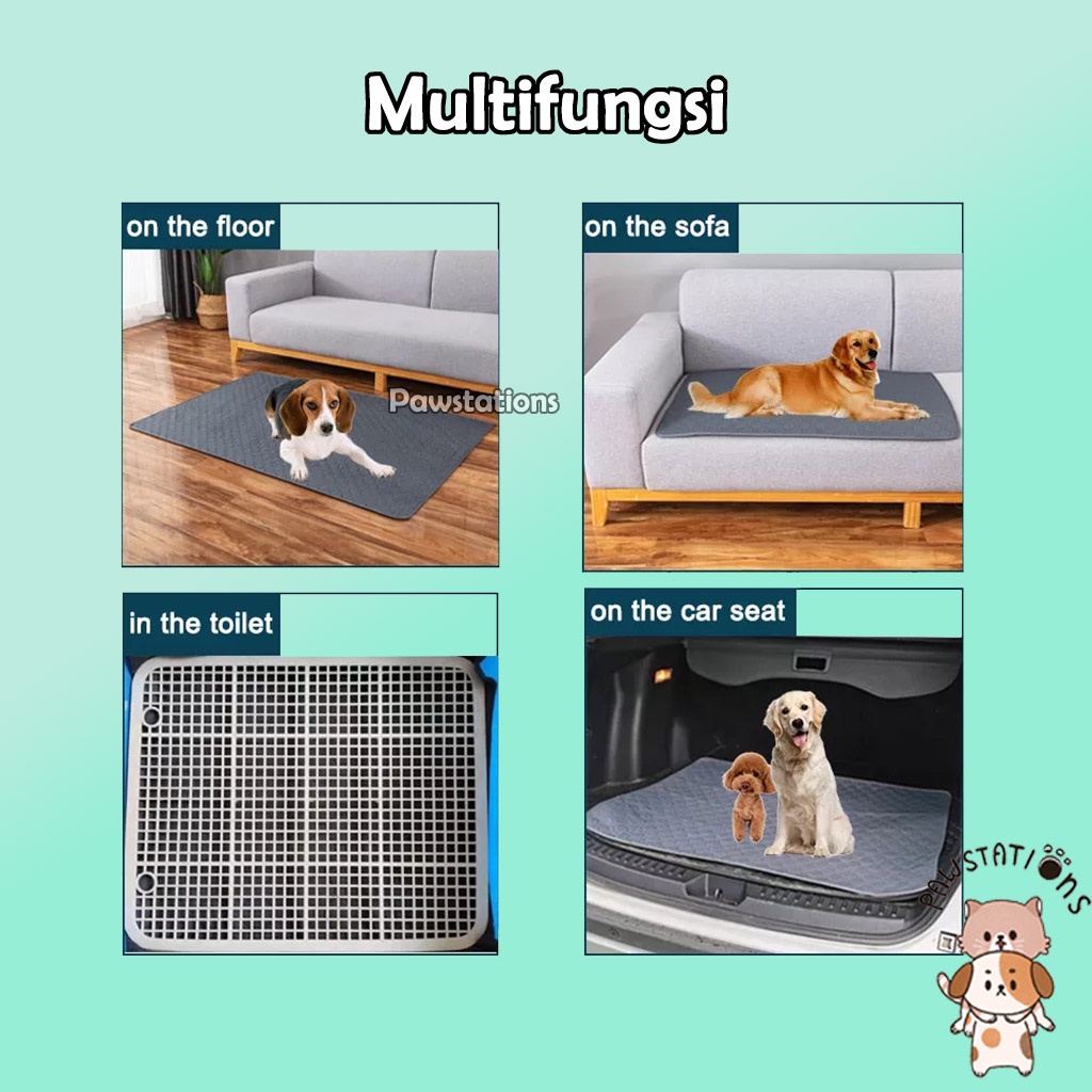 Fitur: 1. Anti Bocor, Penyerapan Maksimal 2. Banyak Ukuran 3. Bagian bawah Anti selip 4. Multifungsi, bisa jadi alas duduk anabul dimanapun