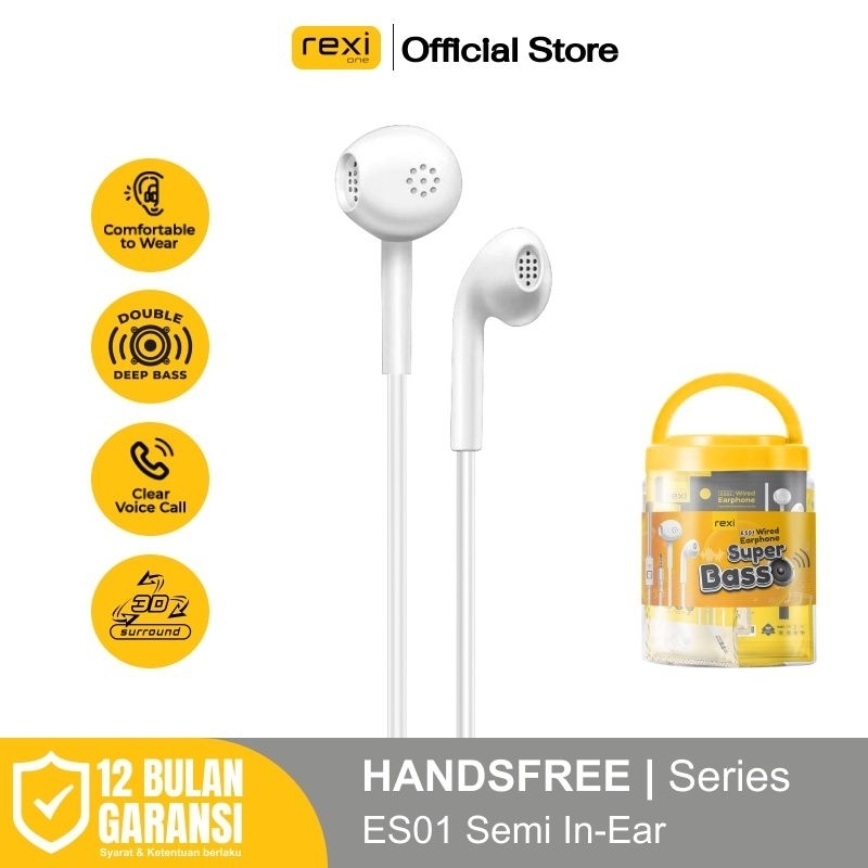 rexione Semi In-Ear Wired Handsfree Super Bass 3D Stereo (Toples 30 pcs) ES01