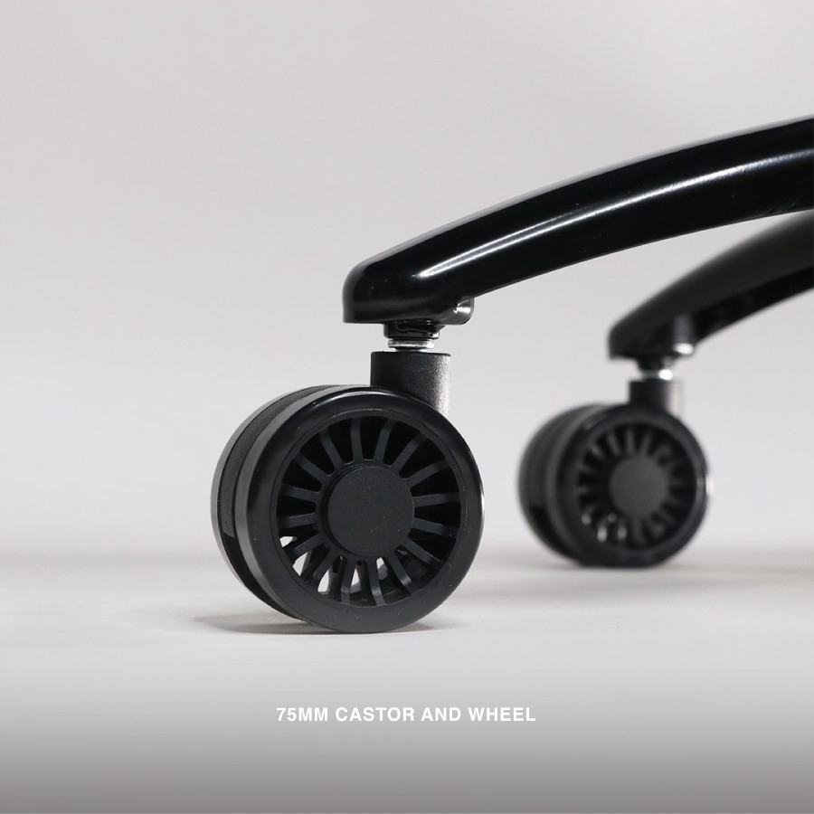 Dimensi : - Tinggi sandaran: 88cm - Lebar sandaran (pundak): 60cm - Panjang alas: 52cm - Lebar alas: 57cm - Tinggi maksimal dudukan (dihitung dari lantai - bagian bawah alas): 61cm - Panjang maksimal handrest: 30-39cm - Berat total: sekitar 29kg