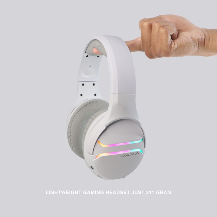 Ultimate Triple Connecttion: Wireless 2.4GHz, Bluetooth, AUX 3.5mm Available in 2 color: Orbit Black and Orbit White Easy-to-Use Detachable Dual Microphone (Built-in & Gaming) Bigger Driver Speaker, 50mm Diameter Powerful Sound with Rich Bass and Clarity Mid Bigger Battery Capacity, 1000mAH Polymer Lithium Battery Playing Time up to 15 hours (Without LED) Compatible to Multi-Device: 2.4Ghz (PS4, PS5 , Switch, PC/Mac, Smart TV, Android), Bluetooth (Android, iOS, Laptop), 3.5mm (Xbox and All Device with Aux 3.5mm Port) Lightweight Gaming Headset, Only 311 gram Fabric Material Earpad for More Comfort and Longer Usage 8 Modes of Double Stripe RGB LED Light (Including LED off) Easy Control Panel: Mute, Volume Change Connection, LED on Headset