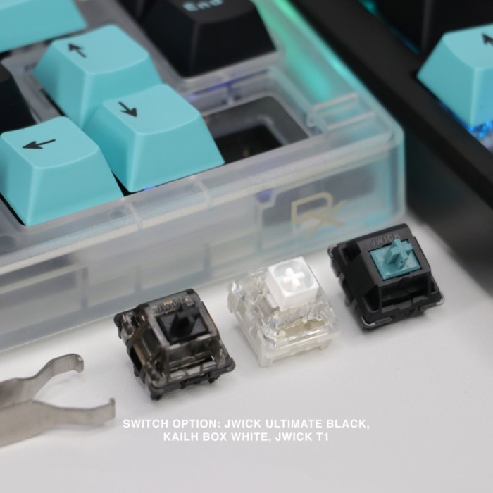 Keyboard Gaming Mekanikal DAXA M82X Ultimate terdiri dari 3 pilihan switch, yaitu Jwick Ultimate Black, Kailh Box White, Jwick T1 yang sudah hotswappable 5-Pin Kailh Socket. Desain keyboard ini semakin berkelas dengan penggunaan ABS PA-758 tranparan dengan 2 pilihan warna, yaitu Smokey Black dan Smokey Clear. Dilengkapi dengan Plate Switch Polycarbonate, peredam plate dari Poron Foam dam Silicon Pad serta pemasangannya yang sudah Gasket Mount sehingga keyboard ini sangat dinamis dan mudah untuk dirakit.