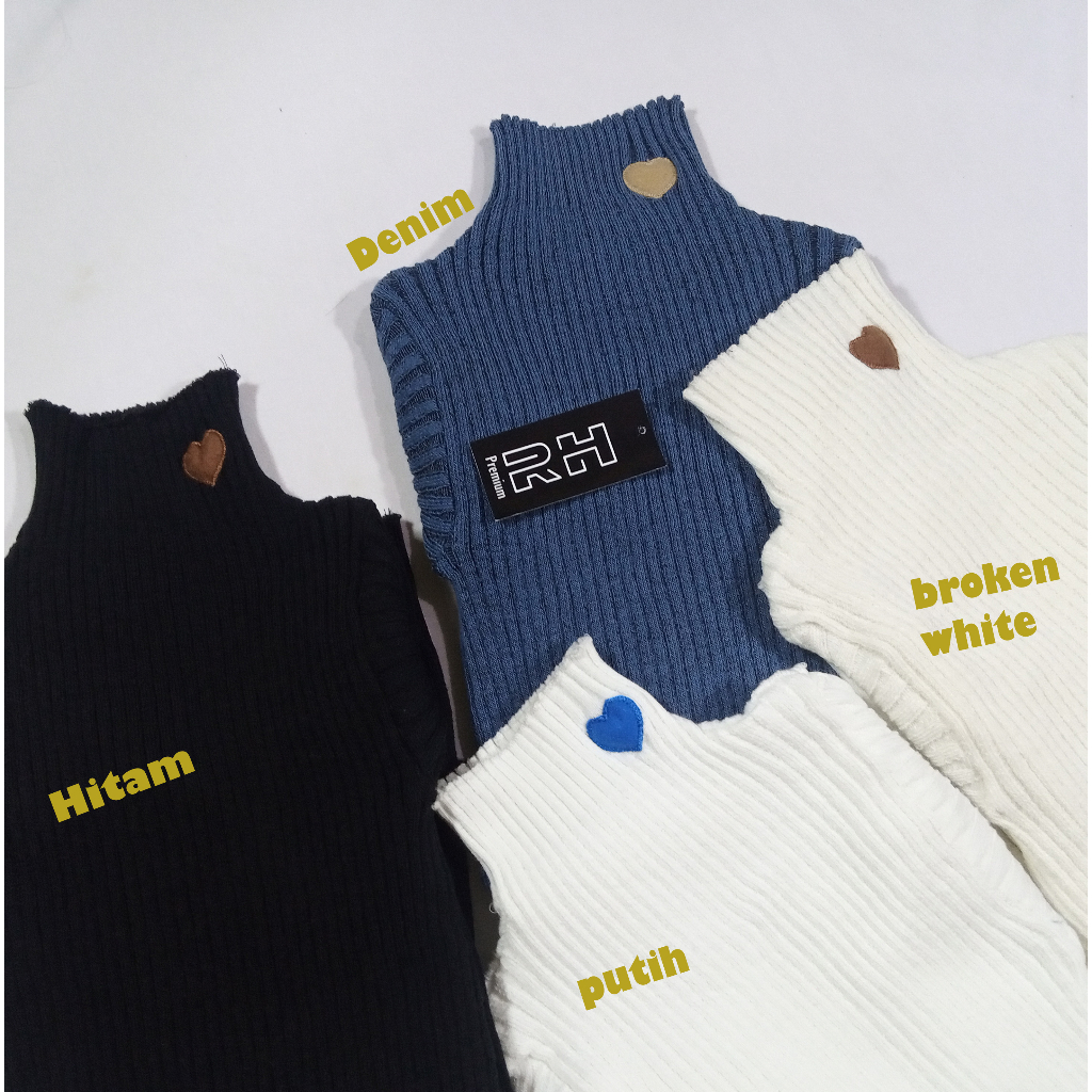 Detail RHcollections - sweater rajut wanita kerah tinggi turtleneck switer rajutan cewek kerah panjang motif salur polos bordir love atasan spandek tebal
