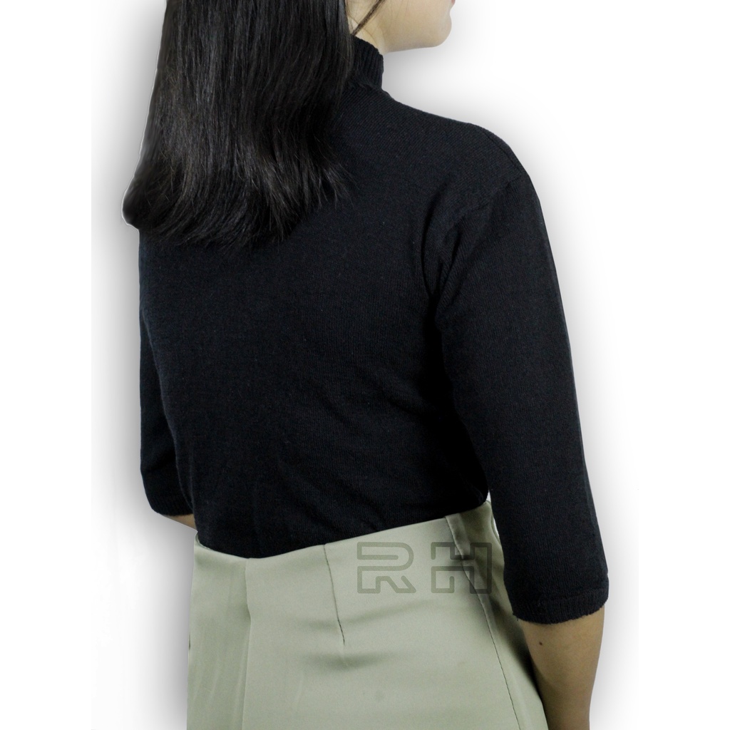 Detail RH - Sweater baju rajut wanita krah tinggi turtleneck motif polos bordir bunga tangan tiga perempat melar elastis nyaman terbaru