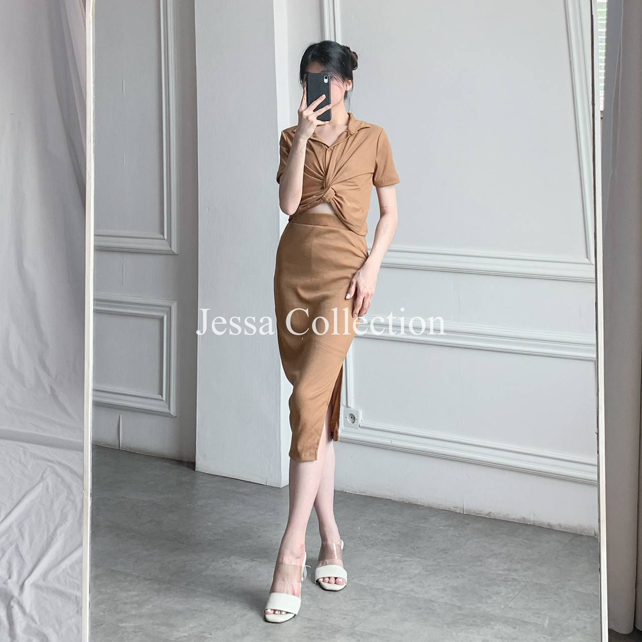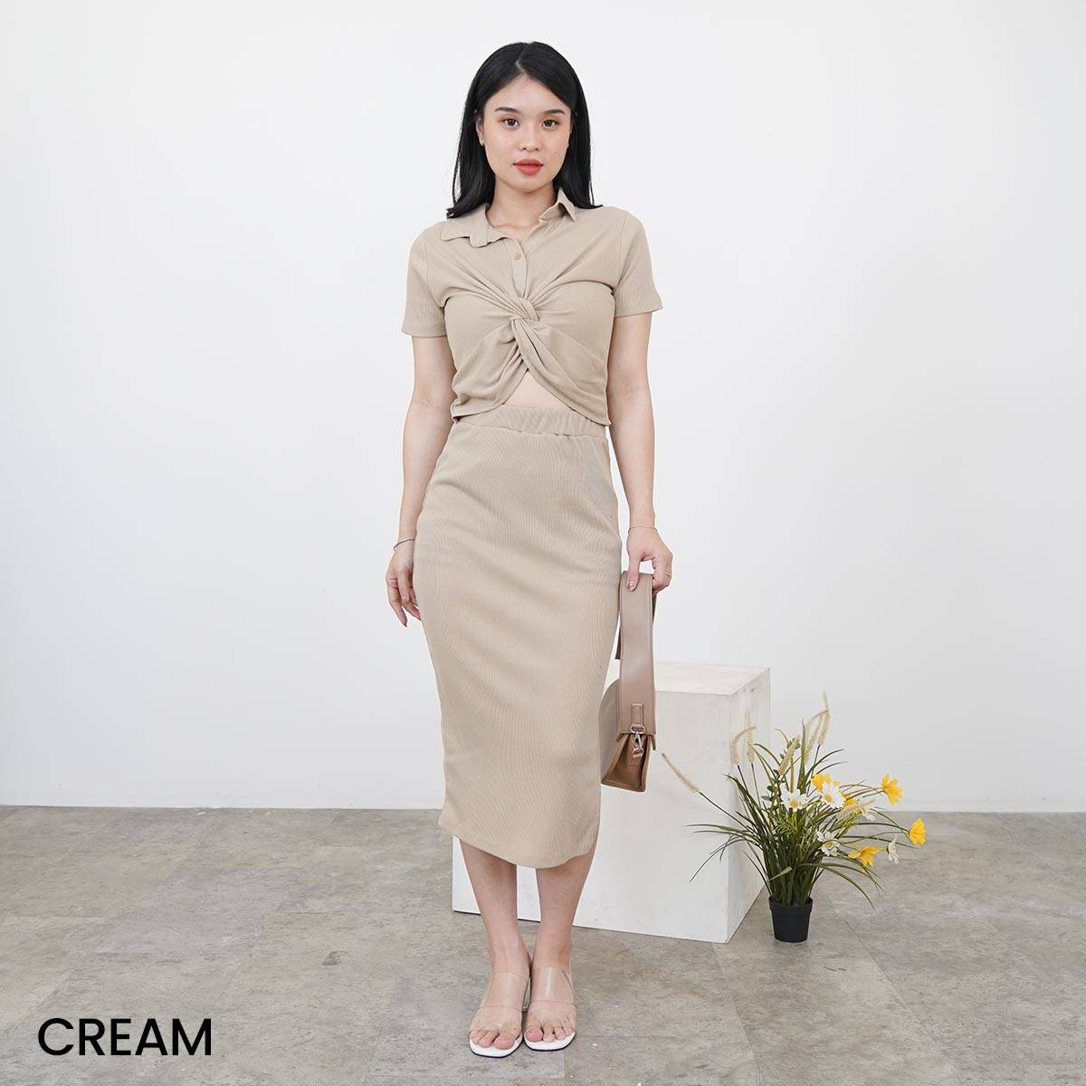 Rib Knit Set Imama IDR 81,000 Available in Black, Matcha, Cream, Teal, Suede and Choco Material : Rib Knit Top LD : 72cm (masih bisa stretch) Length : 41cm (front) 47cm (back)