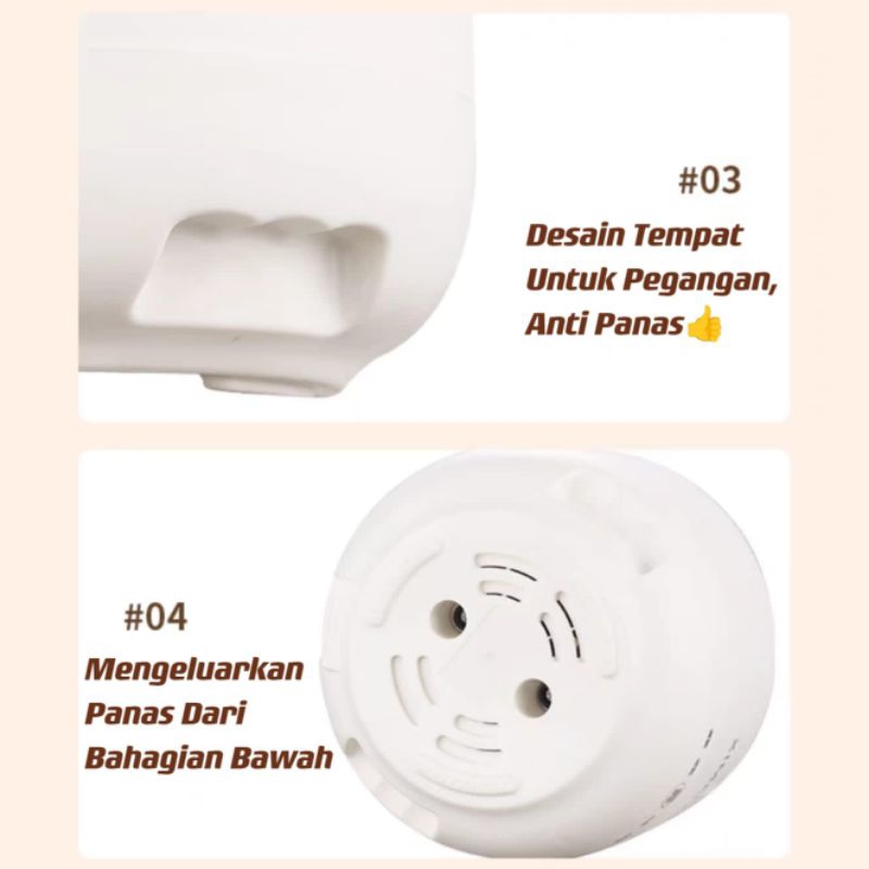 Desain multi fungsi, pot multi guna, pot memasak, air, telur kukus dan memasak lainnya. Puaskan banyak keinginan anda, juga bias untuk menikmati makanan yang hangat dimanapun. Cegah kering dengan mematikan daya saat selesai digunakan, hindari kecelakaan karena suhu uap yang tinggi.