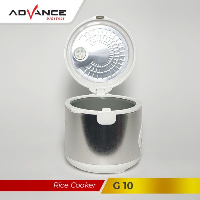 Keuntungan: 1. Rice cooker G10 hadir sebagai perlengkapan rumah tangga yang sangat membantu untuk memasak dan menghangatkan nasi dengan kualitas yang baik, memiliki kapasitas 1.2 liter alat ini hemat listrik dengan daya 350Watt lebih rendah dikelasnya. Rice Cooker G10 didesain dengan warna metalik dan tampilan yang elegan. 2. Minimalis:Dibuat dengan bodi plastik dan alumunium pan, cocok diletakkan di mana saja. Rice cooker ini memiliki bentuk bulat dengan warna putih yang elegan sehingga pas sebagai pendamping wadah lauk di meja makan atau di dalam dapur.