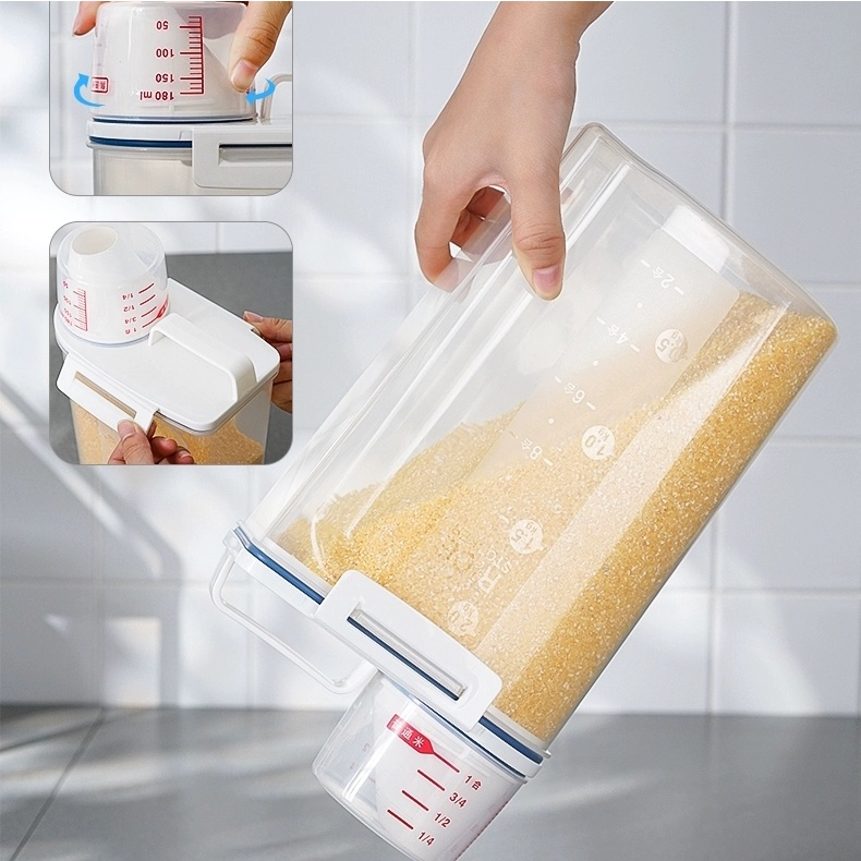 Rice Storage Jar 2kg Transparent /Tempat Penyimpanan Beras Kacang Multifungsi /Botol Dry Food Dengan Cup/Rice Storage Jar