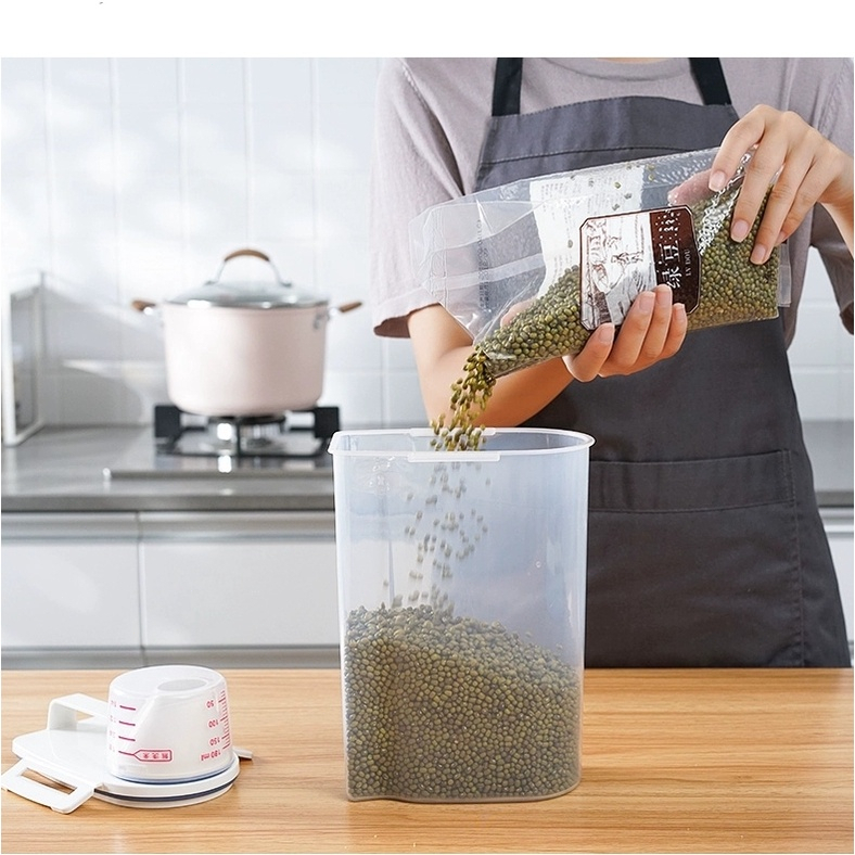 Perlengkapan Rumah > Peralatan Dapur > Tempat Penyimpanan Makanan > Rice Storage Jar 2kg Transparent /Tempat Penyimpanan Beras Kacang Multifungsi /Botol Dry Food Dengan Cup/Rice Storage Jar